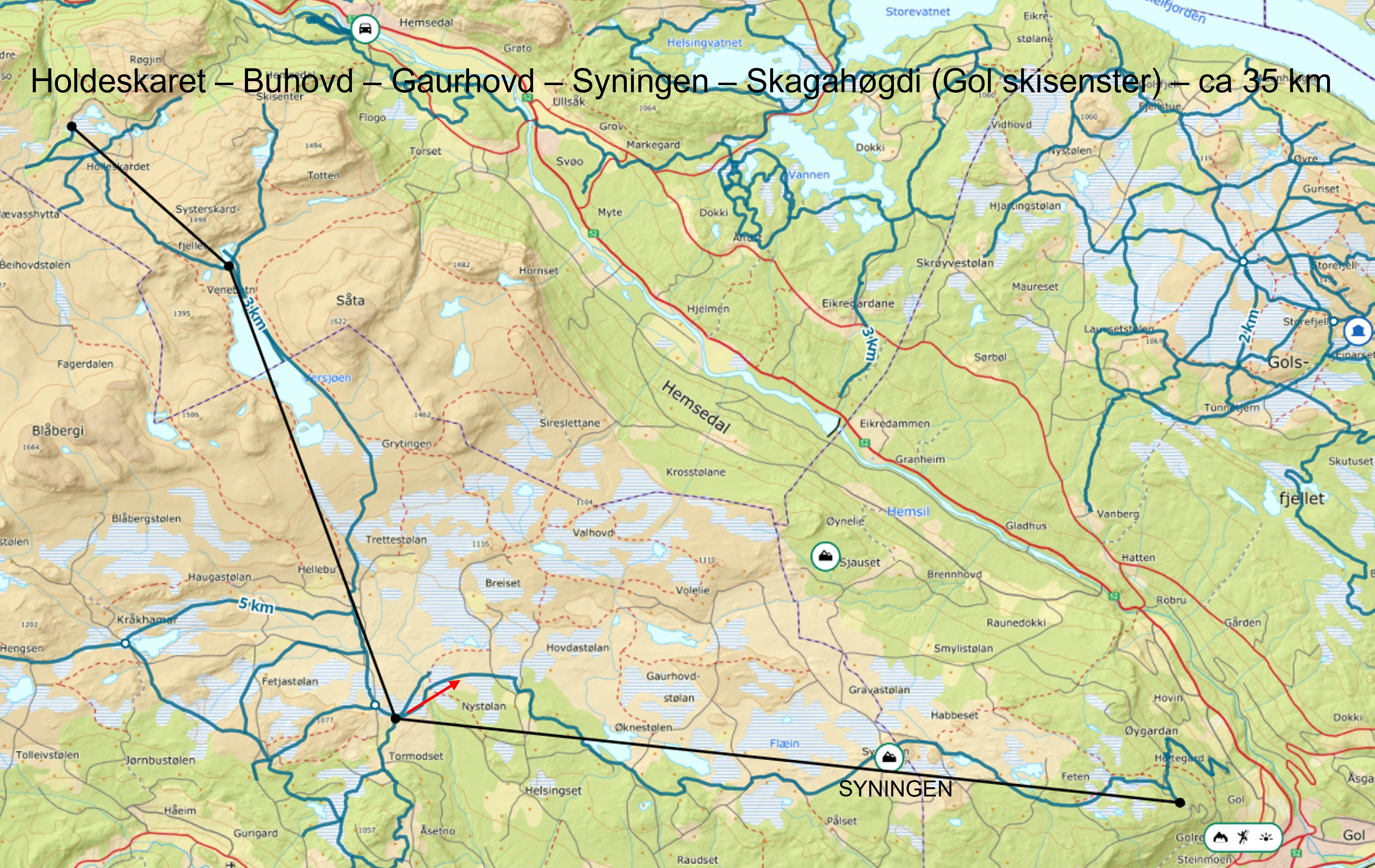 Hemsedal Fritidsboligforening, VY og Turistkontoret setter i samarbeid opp bussruter fra Trøym til Lykkja, og fra Trøym til Feten hver morgen og ettermiddag i jule- og nyttårshelgen. Det settes opp to bussruter, Lykkjaruta og Grøndalsruta. Langrenns- og alpinbussen starter på lørdag 21. desember, og kjører t.o.m. søndag 5. januar - unntatt juleaften og 1. juledag. Begge bussrutene kjører tur/retur på morgenen og tur/retur på ettermiddagen.