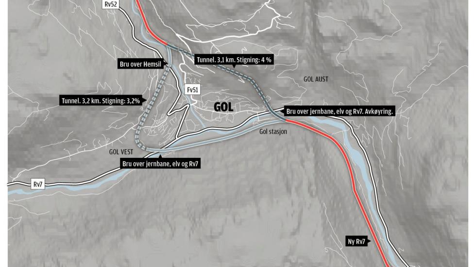 Hallingdølen skriver i sin utgave 28/2-2019 følgende om planer for utbygging av RV52 gjennom Gol: