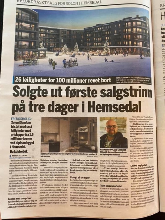 Det rapporteres at over 300 interessenter meldte seg og telefonen ringte uten stopp fra salget startet mandag. Det er planlagt totalt 330 leiligheter nederst i alpinanlegget, første byggetrinnet er 26 leiligheter. Fjellandsbyen skiller seg ut fra andre leilighetsprosjekter på fjellet ved at flertallet av leilighetene kommer i ministørrelse på 21, 35 og 44 kvadratmeter med en prislapp som spenner seg fra 1,6 mill. kr. for den minste via 2,4 mill. for den mellomste og 2,9 mill. for 44 kvadratmeteren med to ekstra dobbeltsenger i høyden i en sovealkove.